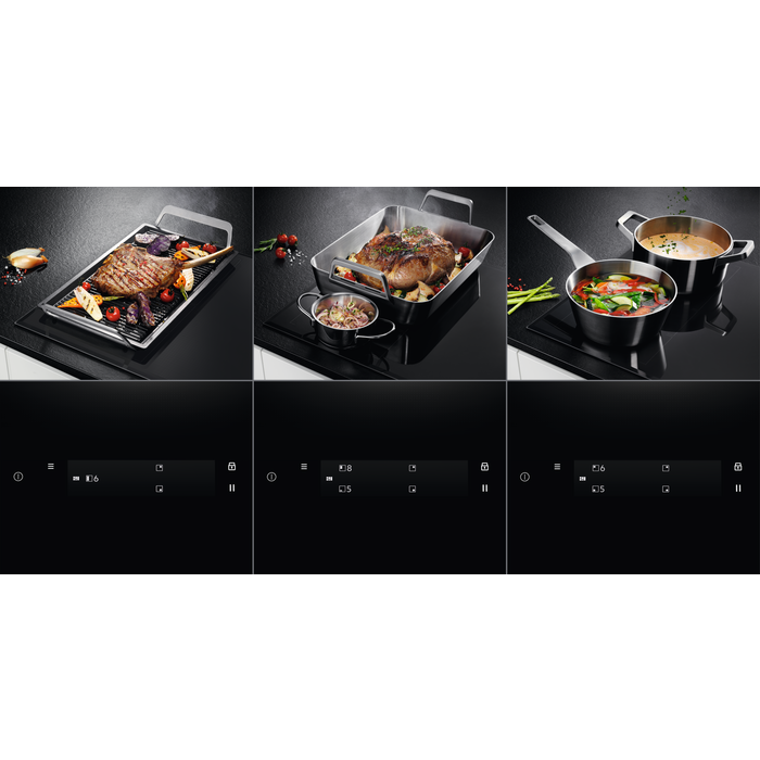FunctiiIncalzire reziduala in 3 pasi, Semnal sonor, Putere suplimentara, Siguranta copii, Cronometru, Cronometru eco, Flexibridge, Conectare plita-hota, Functie blocare, Topire, Semnal avertizare sfarsit de program, Pauza, PowerSlide, SenseCook Prajire, Oprire sunet, Cronometru
